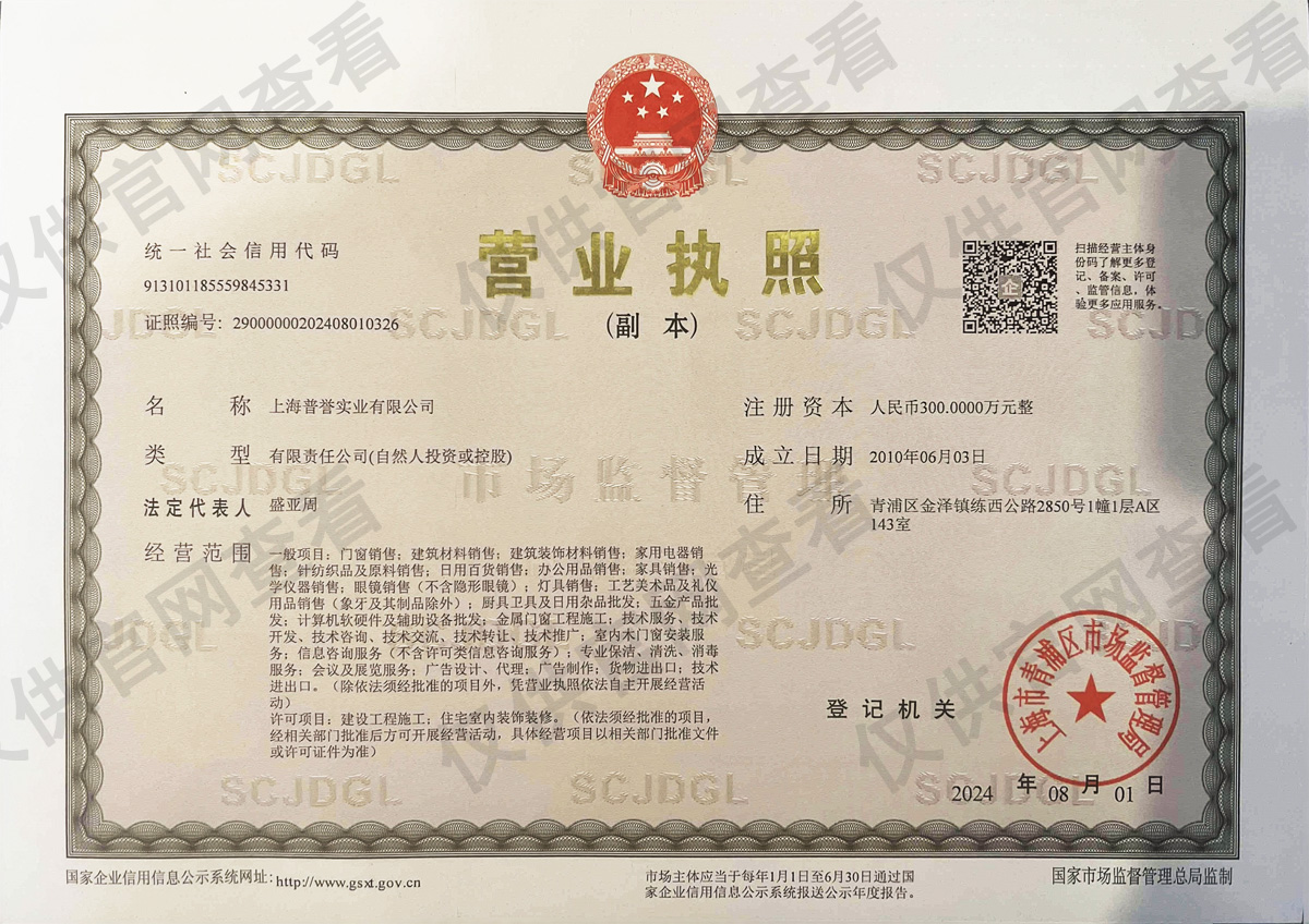 > 上海普譽實業(yè)營業(yè)執(zhí)照